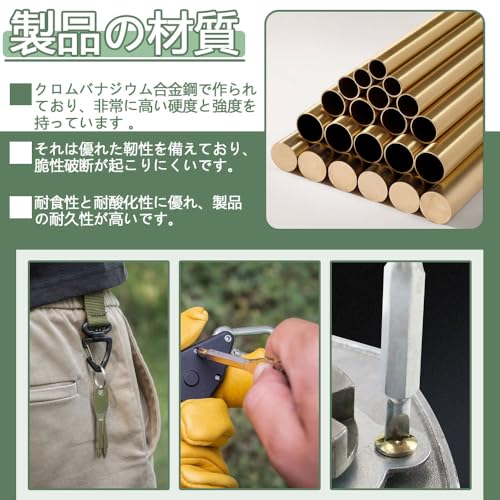 【製品素材】 クロムバナジウム合金鋼で作られており、高い硬度と強度を備え、優れた靭性を持ち、脆くなりにくいです。