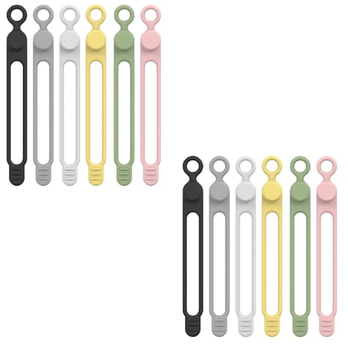 ケーブルバンド シリコン バックルデザイン ケーブルクリップ ケーブルバンド コードクリップ ケーブルバンド シリコン シリコンバンド シリコーン製 各色2本ずつ 6色 (くろ はいいろ しろ きいろ みどり 桜色)
