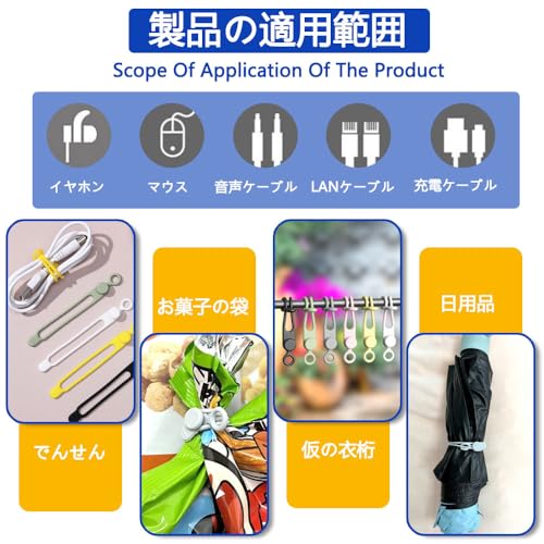 【使用範囲】 イヤホン、マウス、音声ケーブル、LANケーブル、充電ケーブルなどの配線の整理に加え、お菓子の袋、傘、仮の衣桁などの日用品の固定にも適しています。