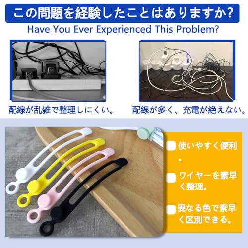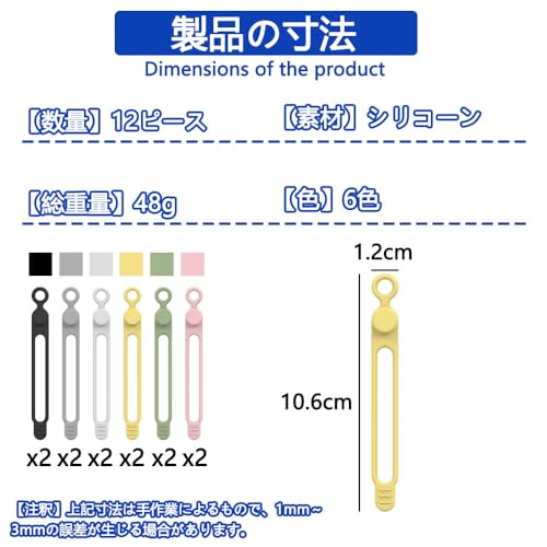 商品の説明 これはシリコン製のケーブル整理クリップセットで、1セットに12個入り、6色です。