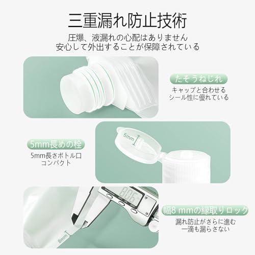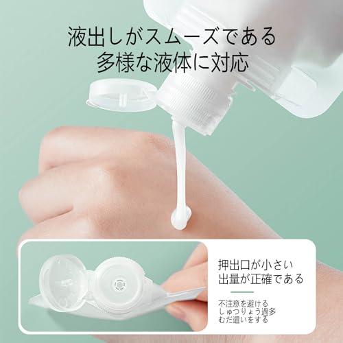 【液漏れ防止設計】トラベル液体個包装の注入口径が1.5cmというのは、液体を簡単に入れるための設計です。蓋をひねることで、その際に液体を入れることができます。また、使用時には折り畳み式の蓋を開けることで、小さな穴から必要な量の液体を押し出すことができます。蓋の長いプラグがしっかりと液体を封じ込めるため、漏れる心配はありません。