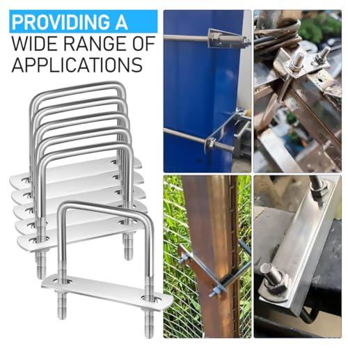 角 Uボルト スクエアUボルト Uクランプボルト M6 ボルト内幅50mm 長さ80mm 304ステンレス鋼 ナットとプレート付き 家庭 産業 ボートトレーラー用 6個セット (シルバー)