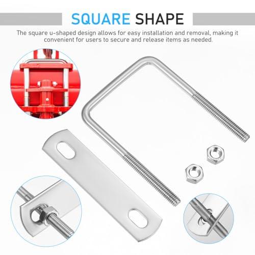 角 Uボルト スクエアUボルト Uクランプボルト M6 ボルト内幅50mm 長さ80mm 304ステンレス鋼 ナットとプレート付き 家庭 産業 ボートトレーラー用 6個セット (シルバー) 送料無料