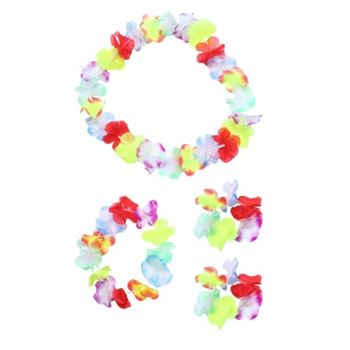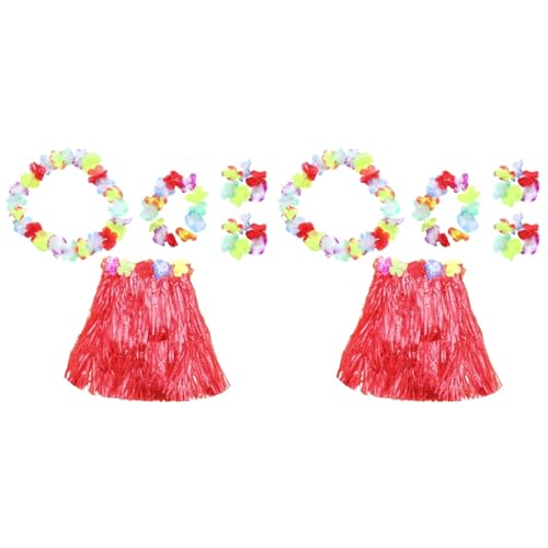 【フリルフラワーリース】花の衣装セット付き伸縮性ハワイアンフラグラススカート,ヘッドフープ付きハワイアンフラリーフスカート、ブレスレット、ネックガーランド。