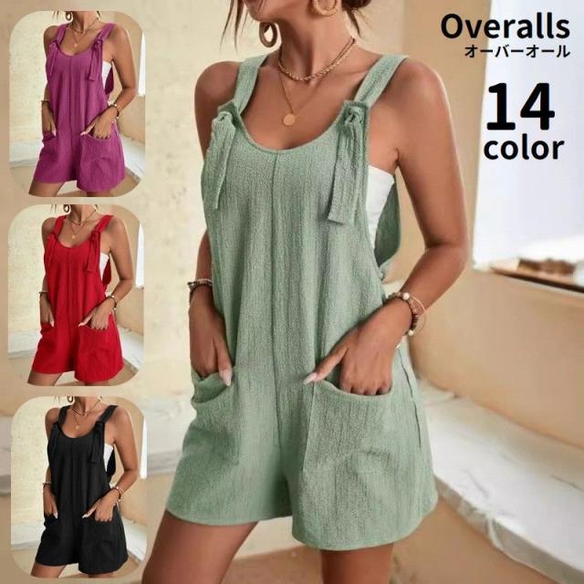 オーバーオール サロペットパンツ レディース 女性 つなぎ ボトムス ショートパンツ 半ズボン 短パン ショート丈 ポケット付き