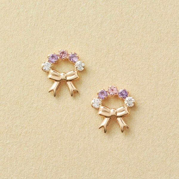 ■素材:K10ピンクゴールド、ピンクトルマリン、ライトアメジスト、キュービックジルコニア(クリア)( ポスト、キャッチ部分のみK18ピンクゴールド)