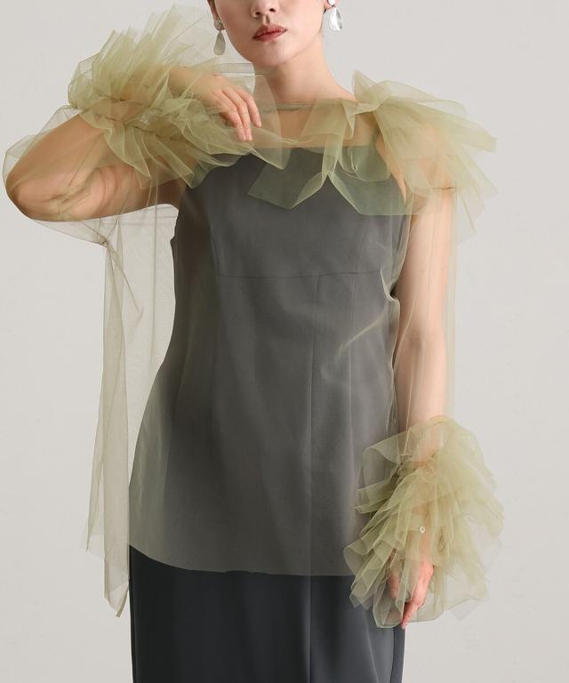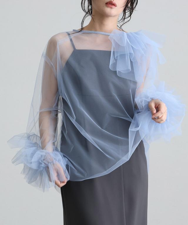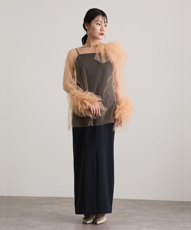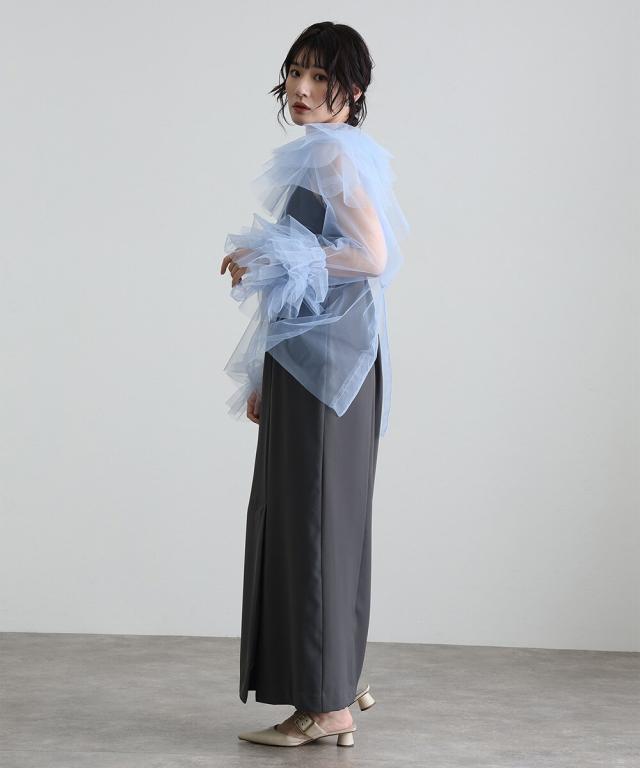 トップスの繊細な透け感が優雅に彩ります。