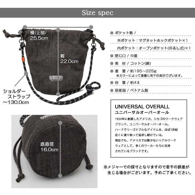 ユニバーサルオーバーオール(UNIVERSALOVERALL)/デニム ザイルコード 巾着 ショルダーバッグ