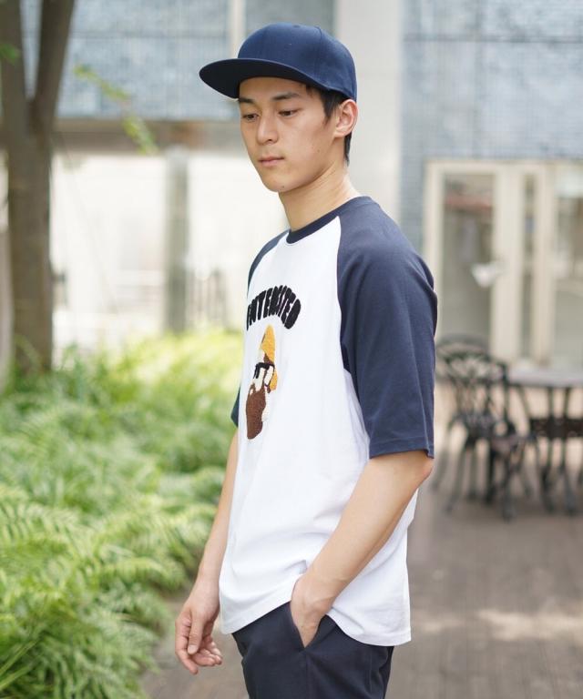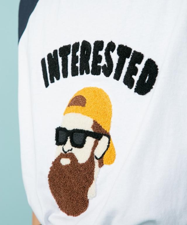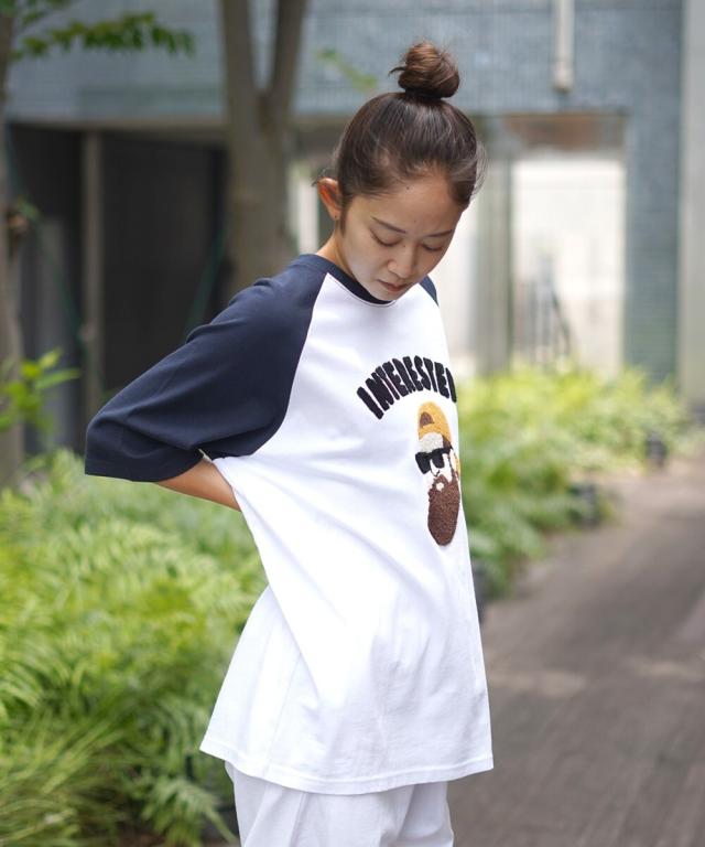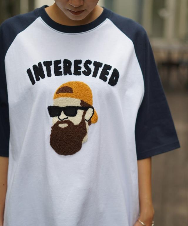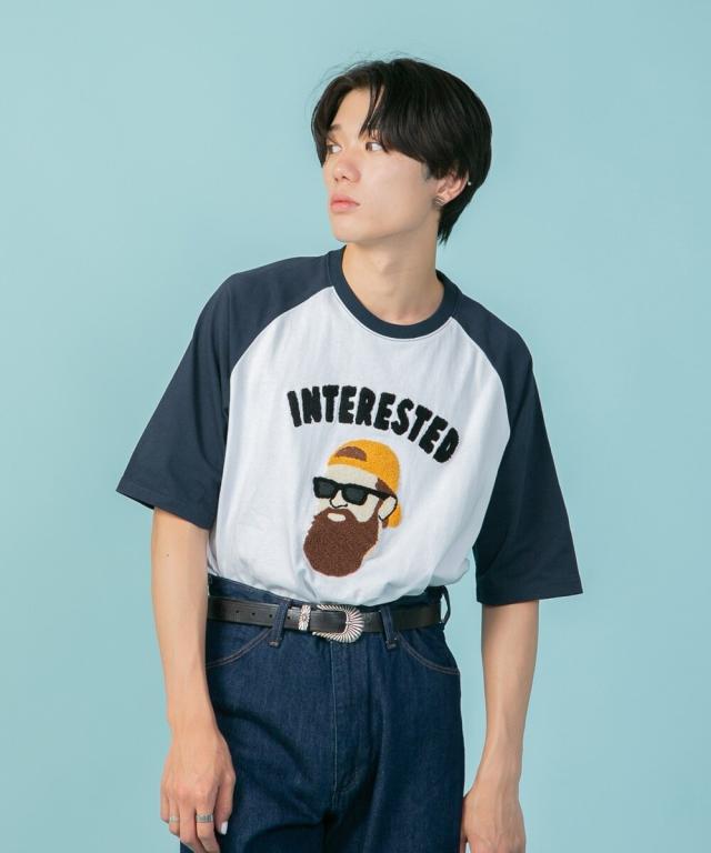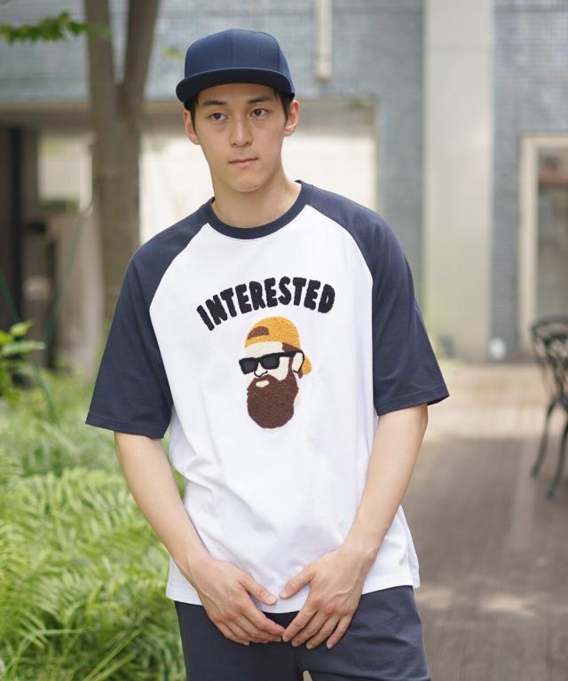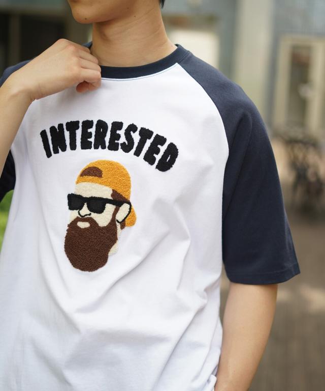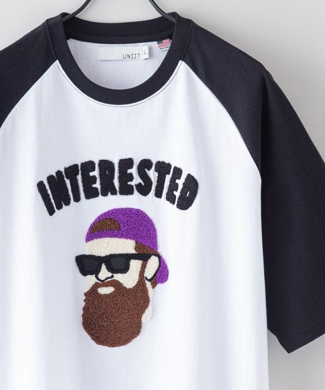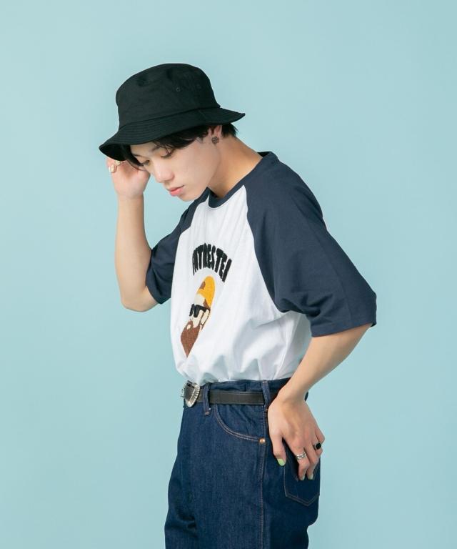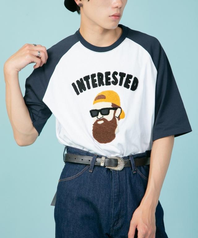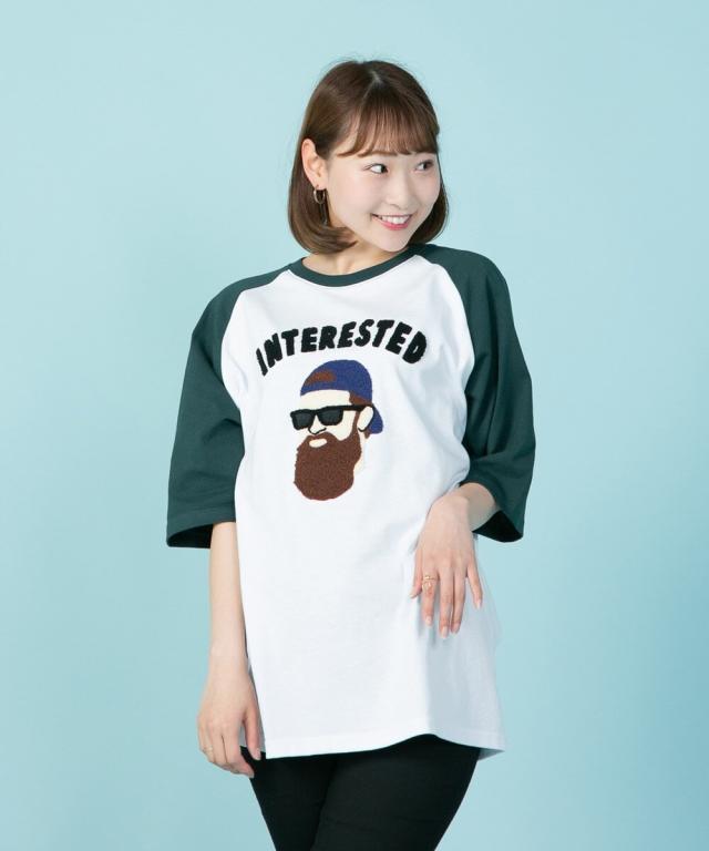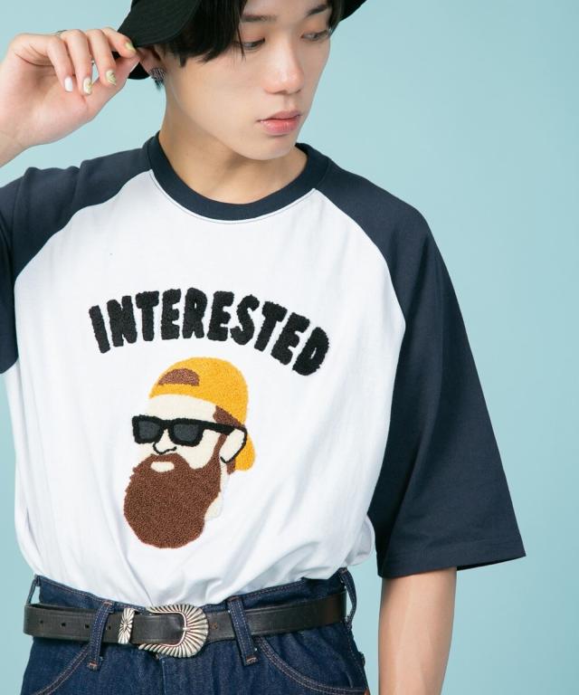 ◆ファンキーなひげおじさんのサガラ刺繍がインパクトのあるビッグラグランT。