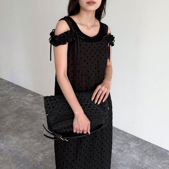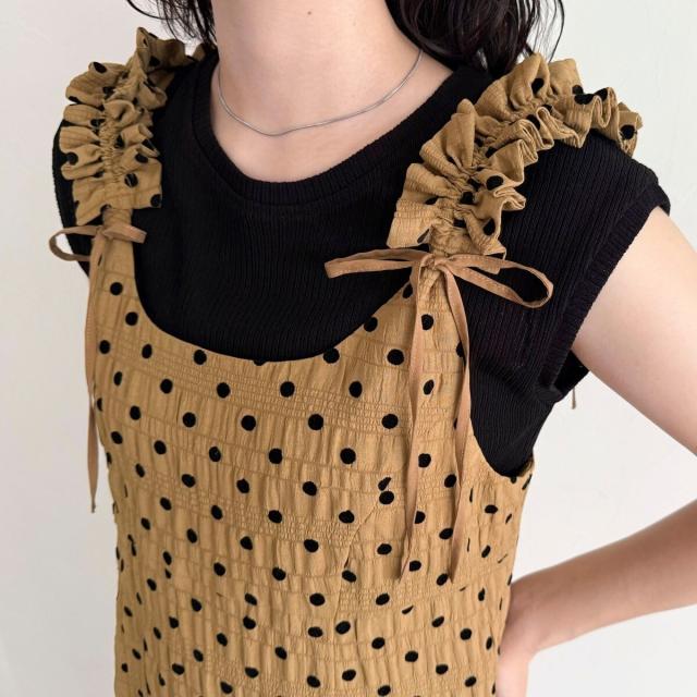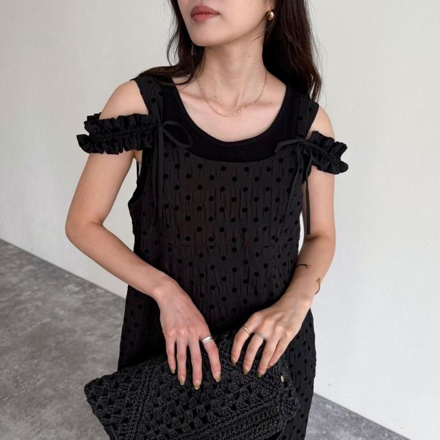 ・肩紐のフリルは取り外し可能◎ フリルを片側だけに付けたり、オフショル風にしたりとアレンジ自在