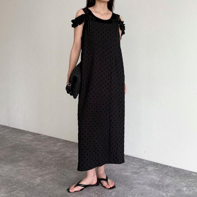 ・全身に施したドット柄が目を引く、着映え抜群の3WAYワンピース