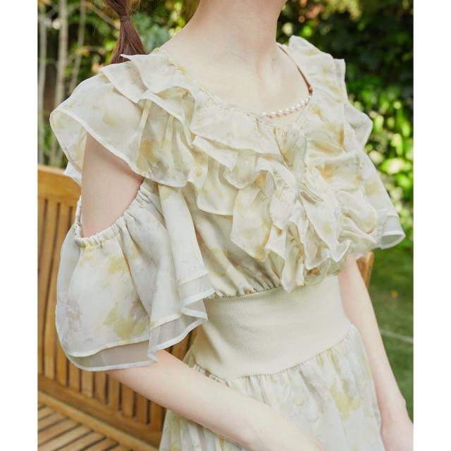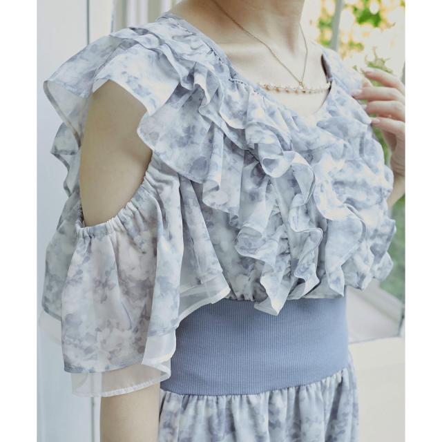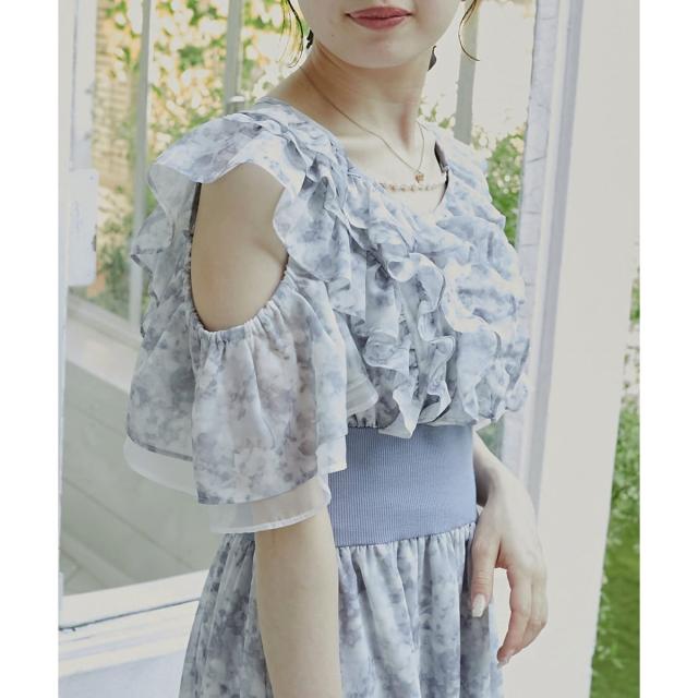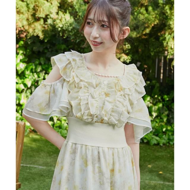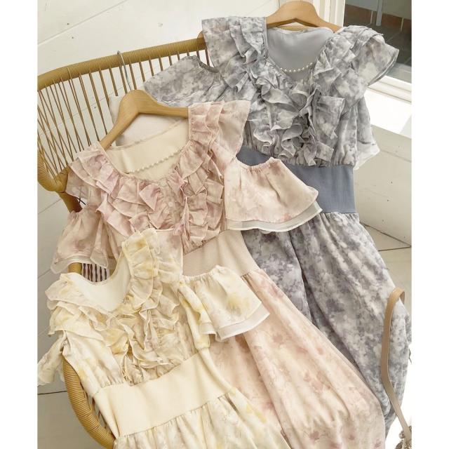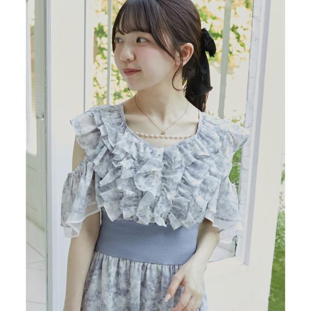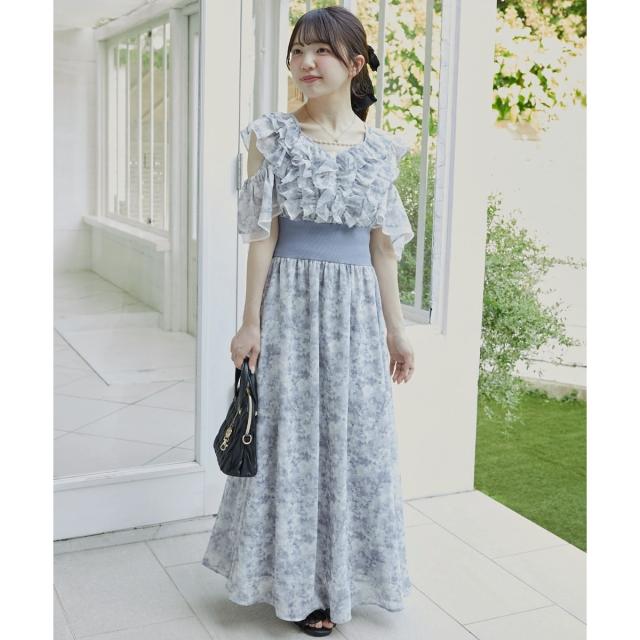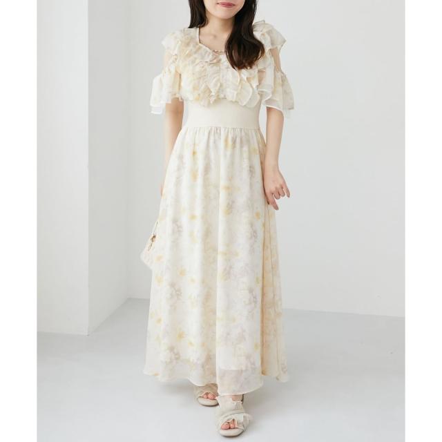 ふんだんに取り入れたフリルがドラマティックな華やかワンピース。