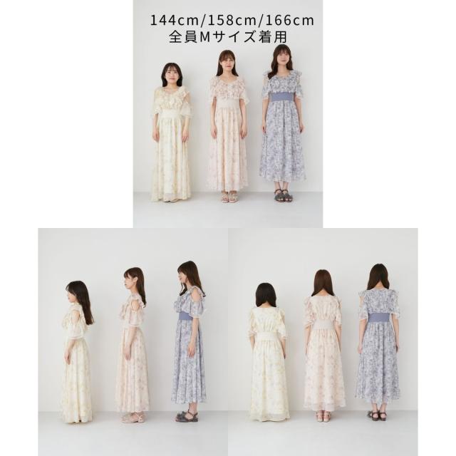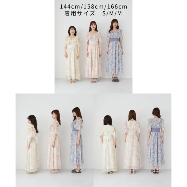 M: バスト94cm/ウエスト60cm/ヒップ108cm/総丈127cm/肩幅34cm/袖丈17cm/袖口39cm