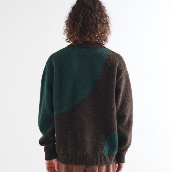 ダブルジャカードでカーブ切り替えを表現したニットポロシャツ。