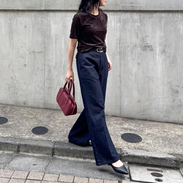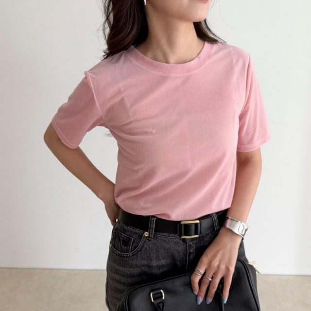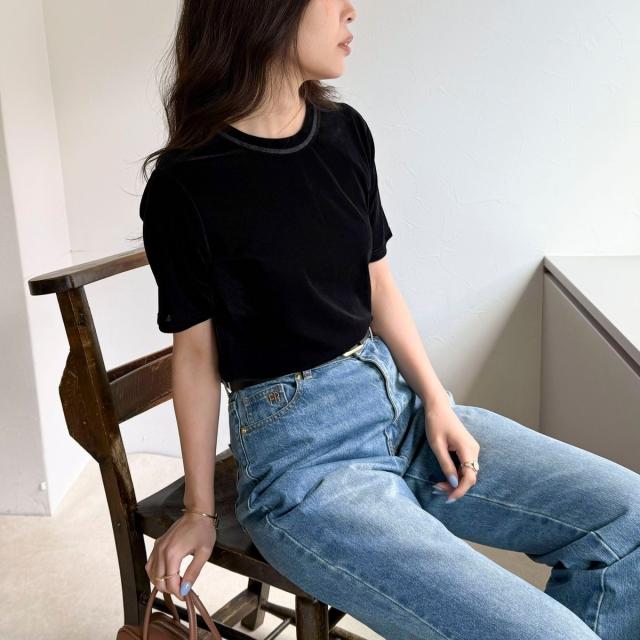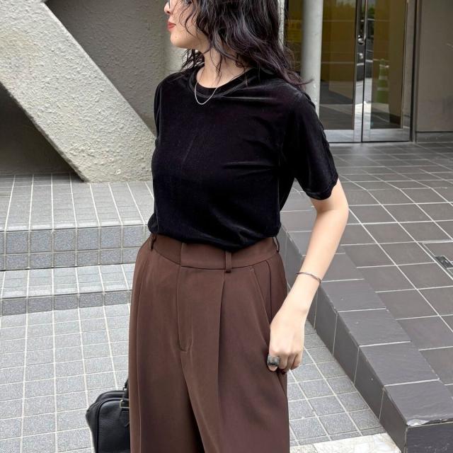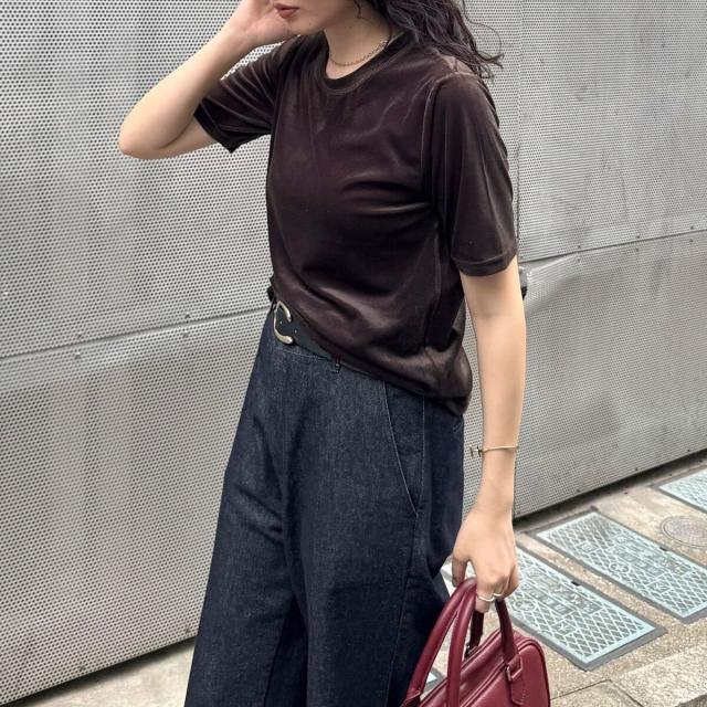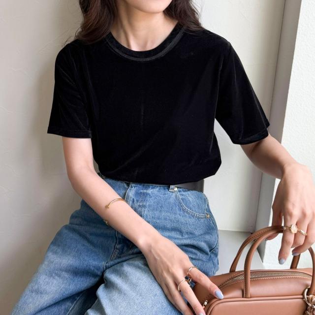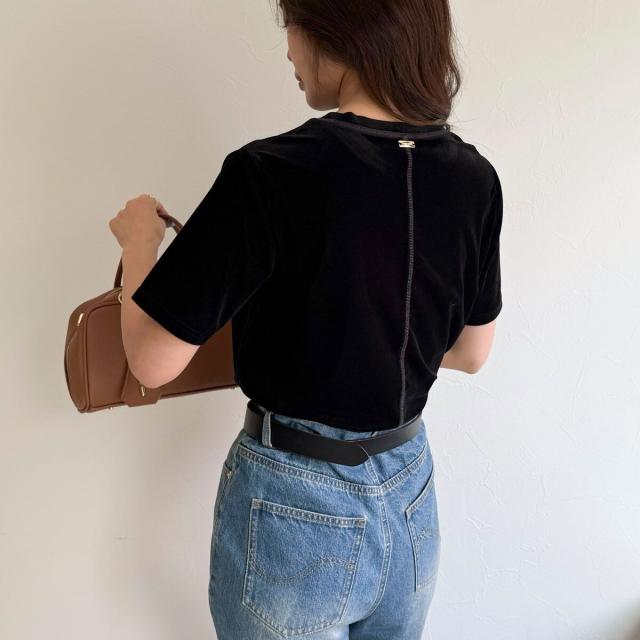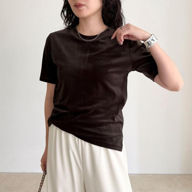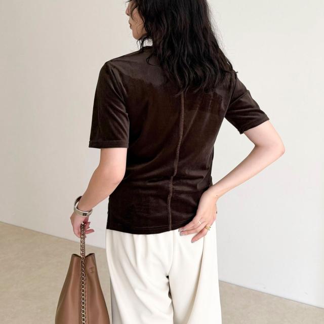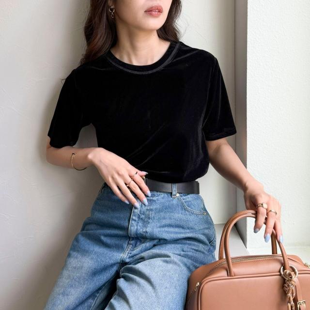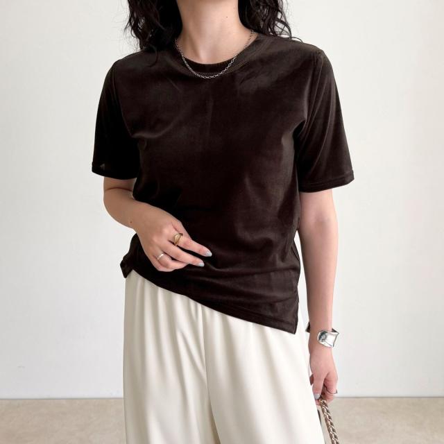 ・なめらかな光沢と柔らかな手触りが魅力のベロア素材Tシャツ