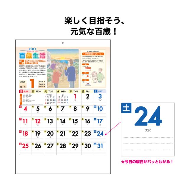 | 2026年 壁掛け 百歳生活 健康歳時記カレンダー NK63 商品詳細 | |