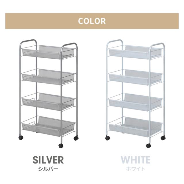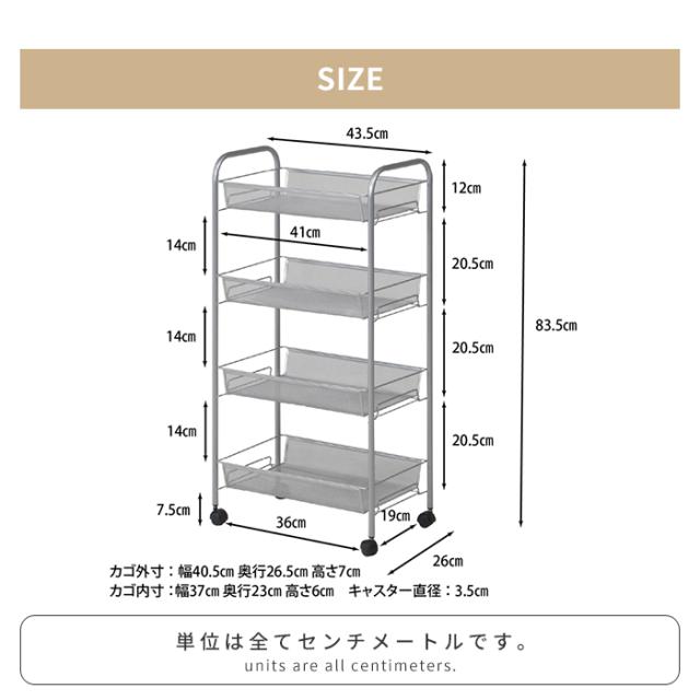 【値下げ】ワゴン キッチンワゴン キャスター付き 4段 幅44cm 奥行26cm トローリーワゴン バスケットワゴン 隙間収納 シンプル