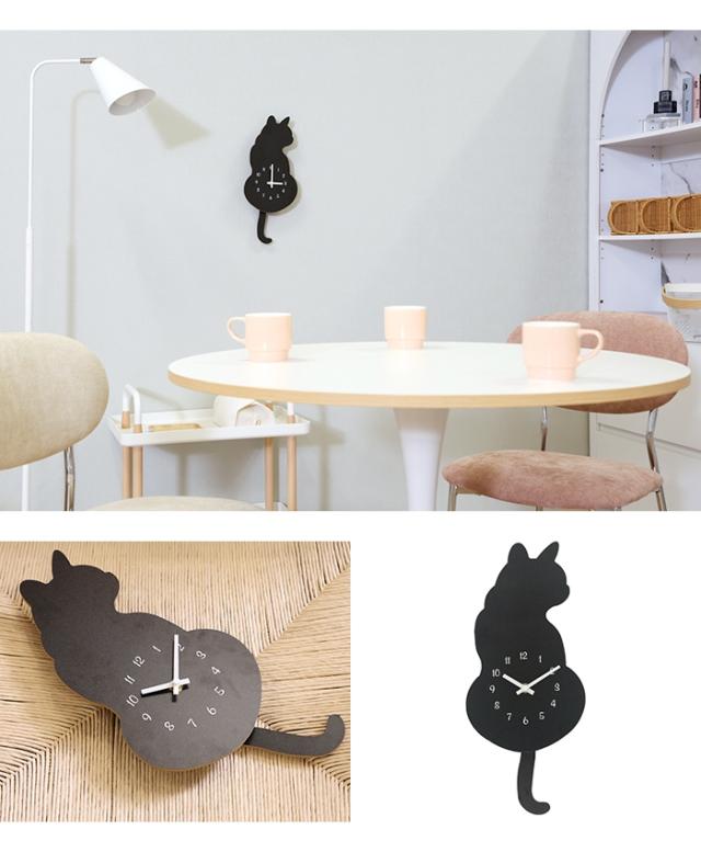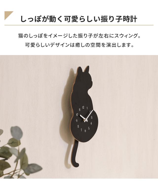 【値下げ】振り子時計 壁掛け時計 猫 かわいい 静音仕様 電池 時計 おしゃれ ウォールクロック しっぽゆらゆら クロネコ インテリア 雑貨