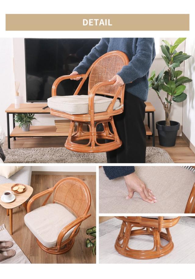 | くるっと回転、ラクラク立ち座り! ラタンチェア ミドル。 |