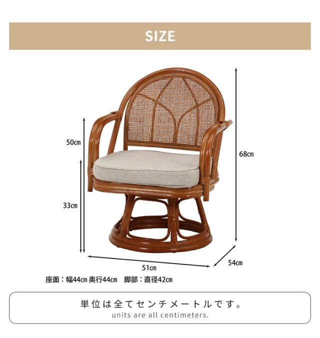 | ラタンチェア 回転チェア 肘付き ミドルタイプ 籐 和モダン 座椅子 1人掛け 回転椅子 クッション付き 背もたれ付き シンプル おしゃれ 1人掛けチェア 回転いす ラタン フロアチェア パーソナルチェア 360度回転 立ち座りしやすい ナチュラル アームレスト インテリア リビング 洋室 和室 座敷 ワンルーム |