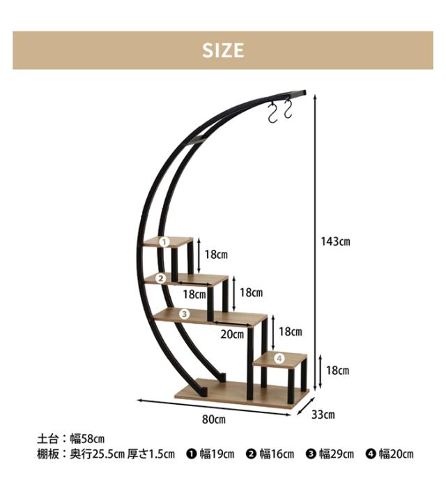 キーワード: ディスプレイラック 収納ラック 大型 シェルフ オープンラック 飾り棚 プランターラック 収納家具 インテリア おしゃれ 収納棚 オープンシェルフ プランタースタンド プランター台 花台 見せる収納 スリム ユニーク デザイン家具 フック付き シンプル モダン かわいい リビング ワンルーム ガーデン 半円型 ハート型 ガーデン 観葉植物 フェイクグリーン 吊り下げ収納 什器