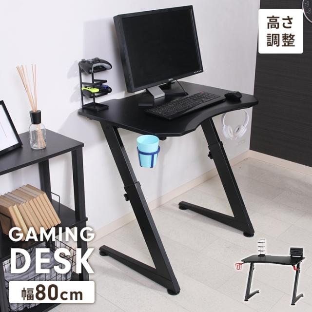 【値下げ】デスク ゲーミングデスク 高さ調整可能 幅80 奥行63 パソコンデスク キッズ用 多機能 スタンド ホルダー フック シンプル
