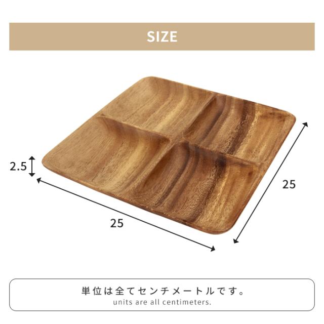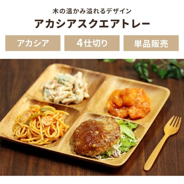 【値下げ】アカシア食器 ランチプレート 4仕切り スクエアトレー 木製食器 カフェ風 テーブルウェア 木目 おしゃれ ナチュラル 食器 小皿