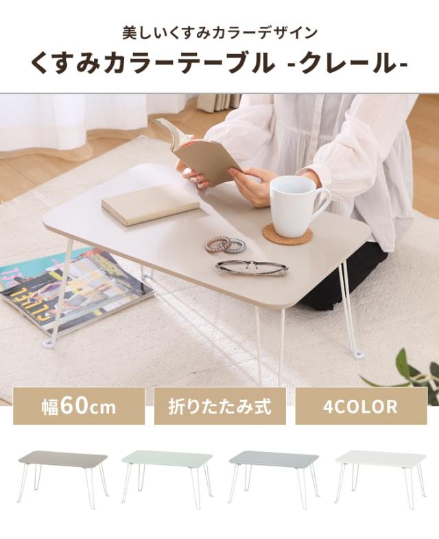 【値下げ】テーブル 折りたたみ ローテーブル 幅60 奥行40 完成品 サイドテーブル コンパクト 省スペース 隙間収納 簡易 くすみカラー
