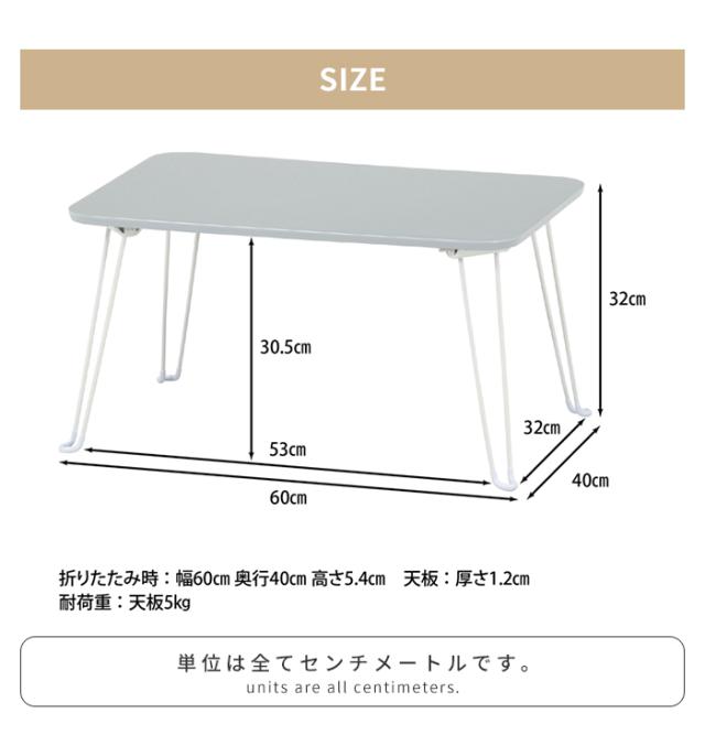| [全体]幅60×奥行40×高さ32cm [天板厚]1.2kg [折畳時]60×40×5.4cm |