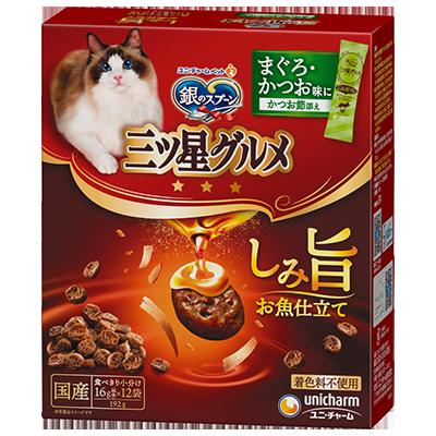 【7個セット】ユニ・チャーム 銀のスプーン三ツ星グルメしみ旨お魚仕立てまぐろ・かつお味にかつお節添え192g
