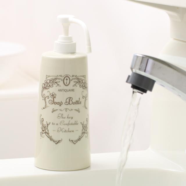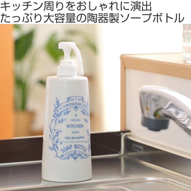 石鹸ボトル 600ml アンティケール キッチン ソープボトル 陶器 ( ディスペンサー ボトル 洗剤 ソープ 詰替えボトル 詰め替え用 600 日本製 陶器製 ハンドソープ アルコール ロングノズル プッシュ 容器 リキッド ポンプ 大容量 )