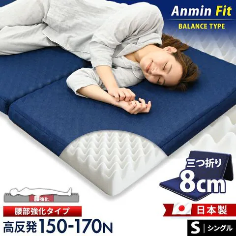【限定3,000円OFFクーポンあり】高反発 三つ折り マットレス シングル 腰痛 スタンダード 日本製 厚み8cm 国産ウレタン使用 150N 腰部分170N バランス プロファイル ウレタン 三つ折りマットレスシングル 体圧分散 折りたたみ 自社製造 敷布団 硬め マットレス 敷き布団