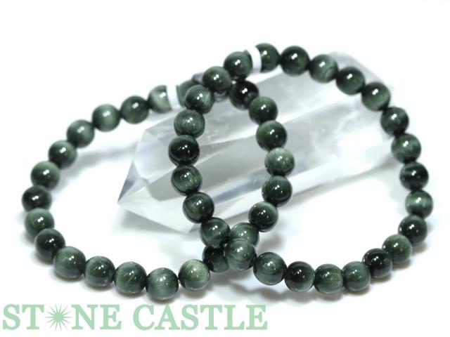 ☆高品質☆【ブレスレット】グリーンルチルキャッツアイ (5A) (約7〜7.5mm) 天然石 パワーストーン