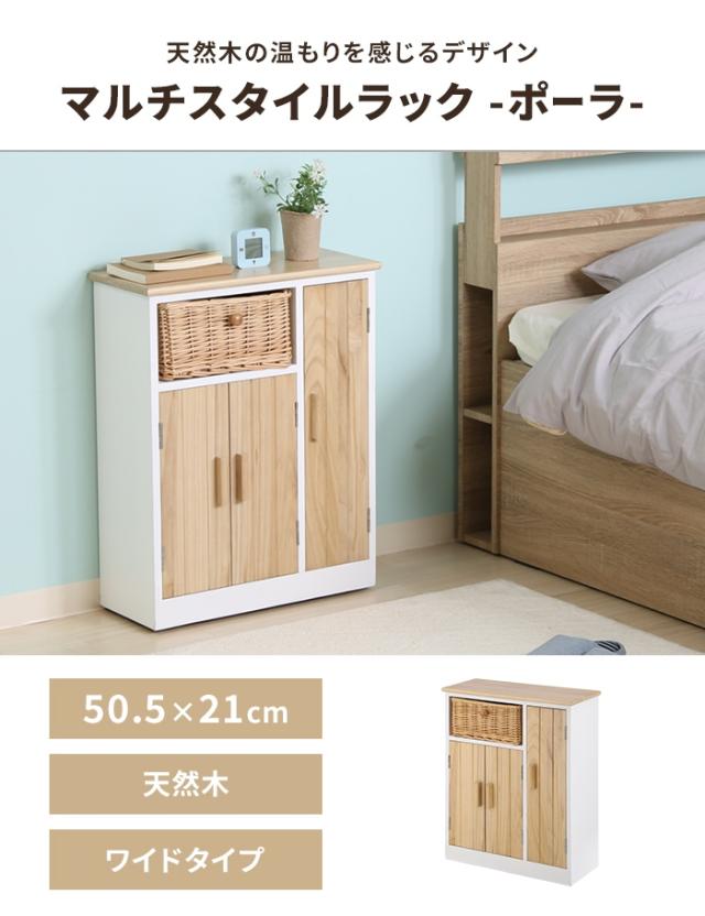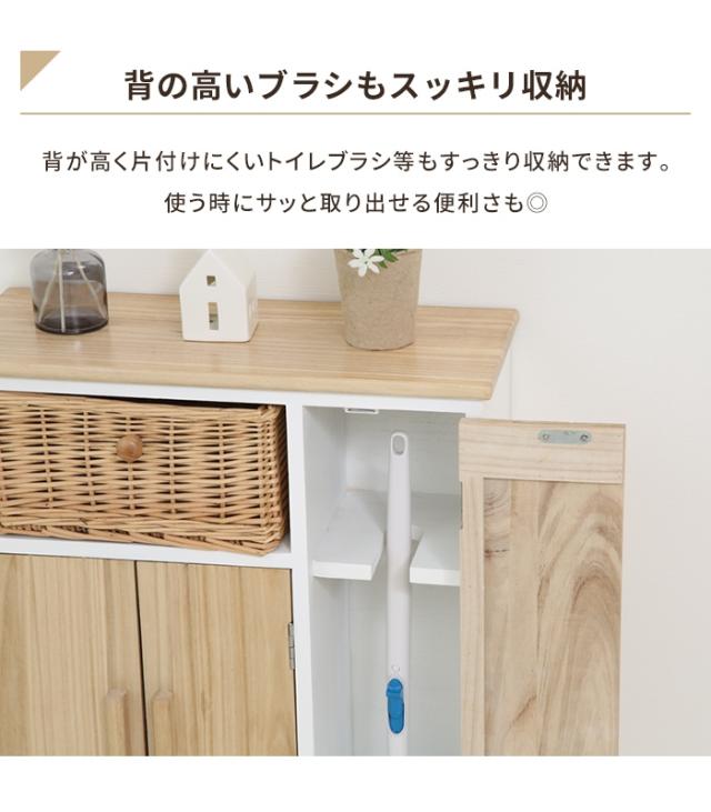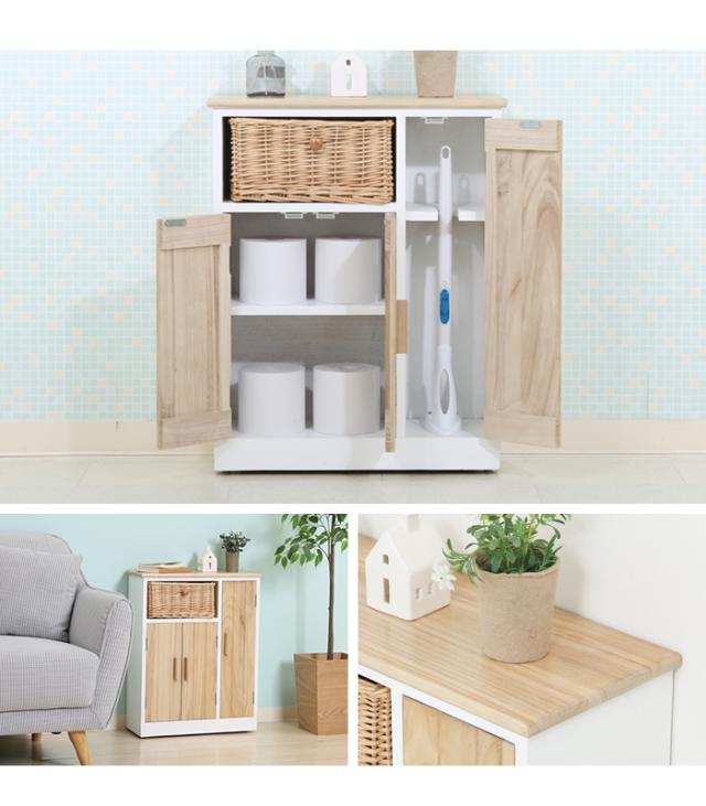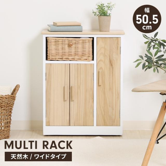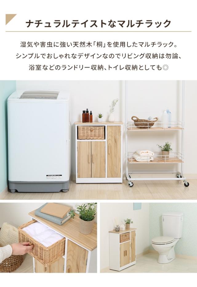 【値下げ】マルチラック 収納棚 木製 幅50.5 トイレ収納ラック リビング収納 インナーバスケット付き 扉付き 収納家具 ナチュラル 棚