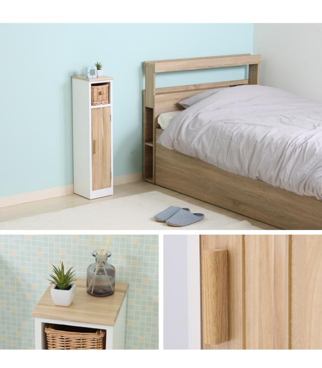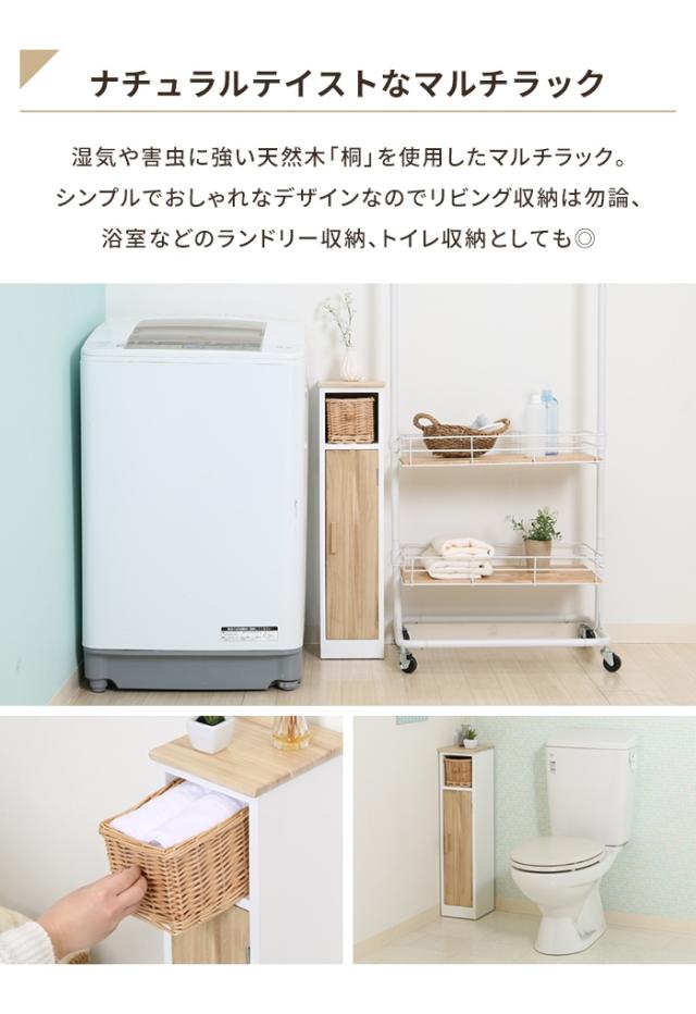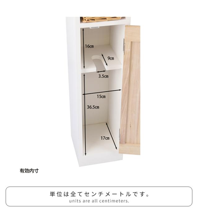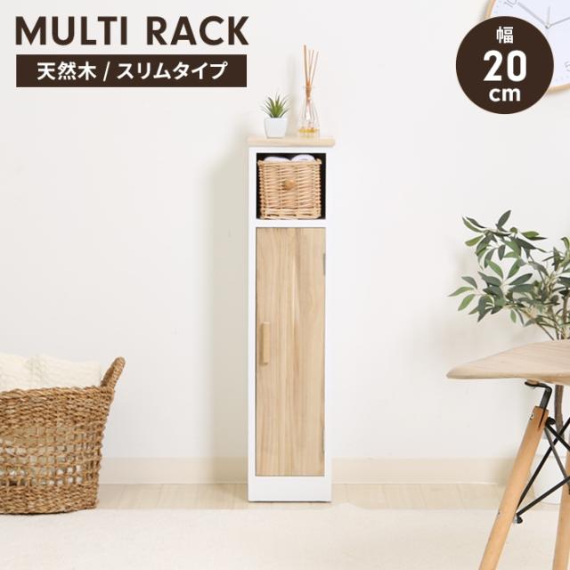 【値下げ】マルチラック 収納棚 木製 幅19 スリム トイレ収納ラック リビング収納 インナーバスケット付き 扉付き 収納家具 ナチュラル