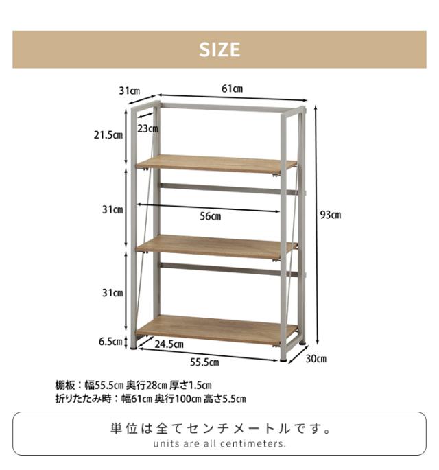 | パタッと折りたためる! 3段オープンシェルフ。 |