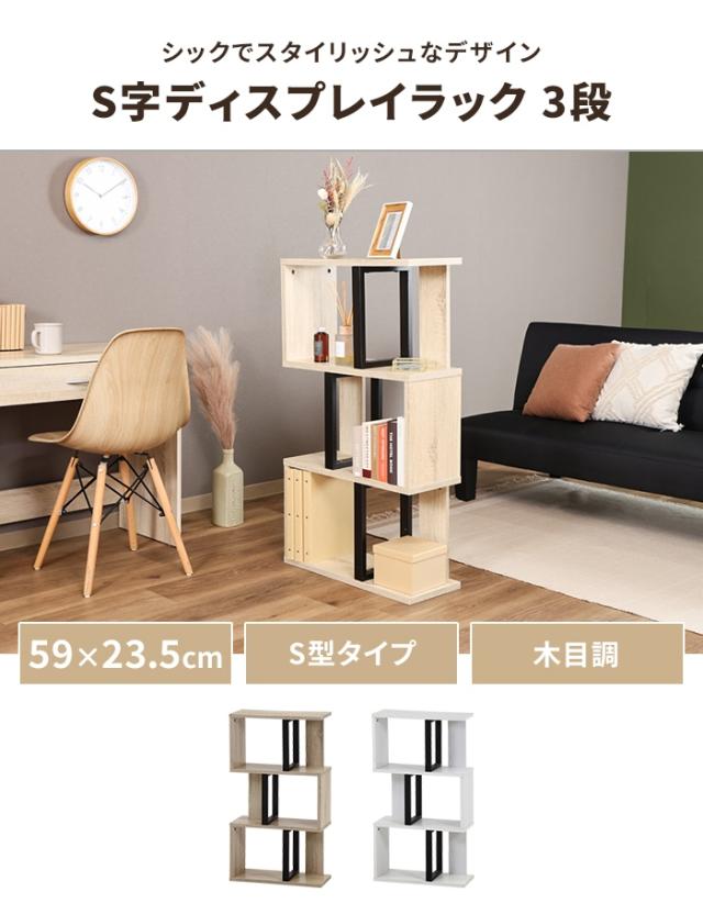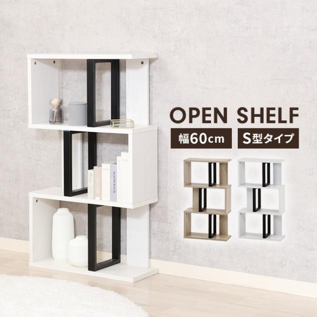 | オープンラック S字型 3段 ラック 幅59 奥行23.5 スリム ディスプレイラック 木製 リビング収納 インテリア 飾り棚 S字ラック シェルフ オープンシェルフ 木製シェルフ 間仕切り 59×23.5 スリム 収納家具 魅せる収納 ディスプレイ 小物置き リビング ダイニング 寝室 ワンルーム ホワイト オークホワイト |