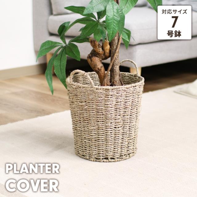 【値下げ】鉢カバー 7号対応 かご 収納バスケット ナチュラル おしゃれ ガマ 蒲 持ち手付き 観葉植物 収納用品 天然素材 かわいい