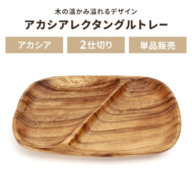 【値下げ】アカシア食器 ランチプレート 2仕切り レクタングルトレー 木製食器 カフェ風 テーブルウェア 木目 おしゃれ ナチュラル 食器