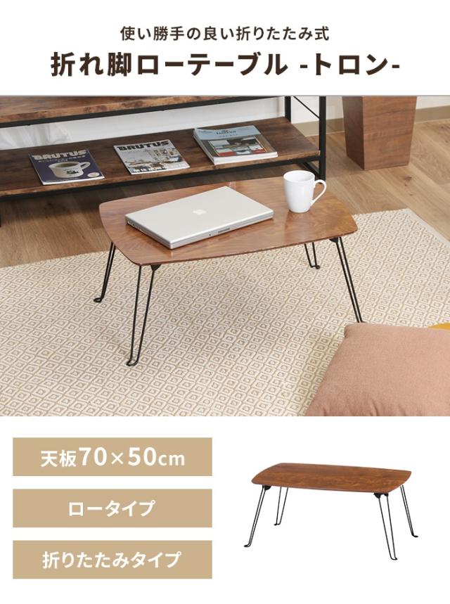 【値下げ】折りたたみテーブル 幅70 奥行50 完成品 折れ脚テーブル ローテーブル センターテーブル 隙間収納 シンプル 木目調 便利