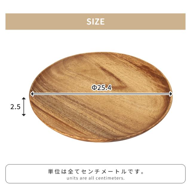 【値下げ】アカシア食器 ランチプレート 幅26cm ラウンドトレー 木製食器 カフェ風 テーブルウェア 木目 おしゃれ ナチュラル 食器 皿