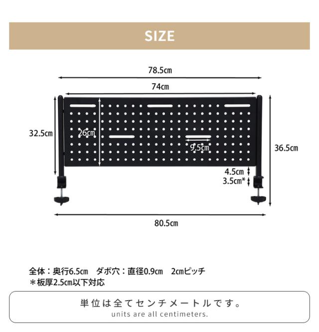 【値下げ】デスクパネル クランプ式 スチール製 マグネット対応 幅81 パンチングボード 有孔 インテリア DIY 仕切り 簡単設置 整理