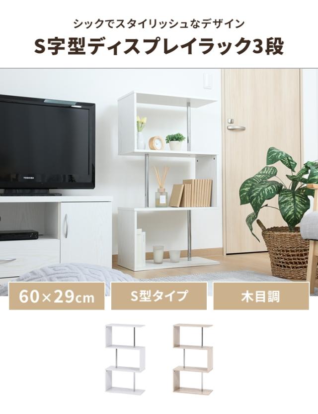 【値下げ】ラック S字型 幅60 オープンラック 3段 ディスプレイラック 木製 リビング収納 インテリア 飾り棚 家具 収納 おしゃれ