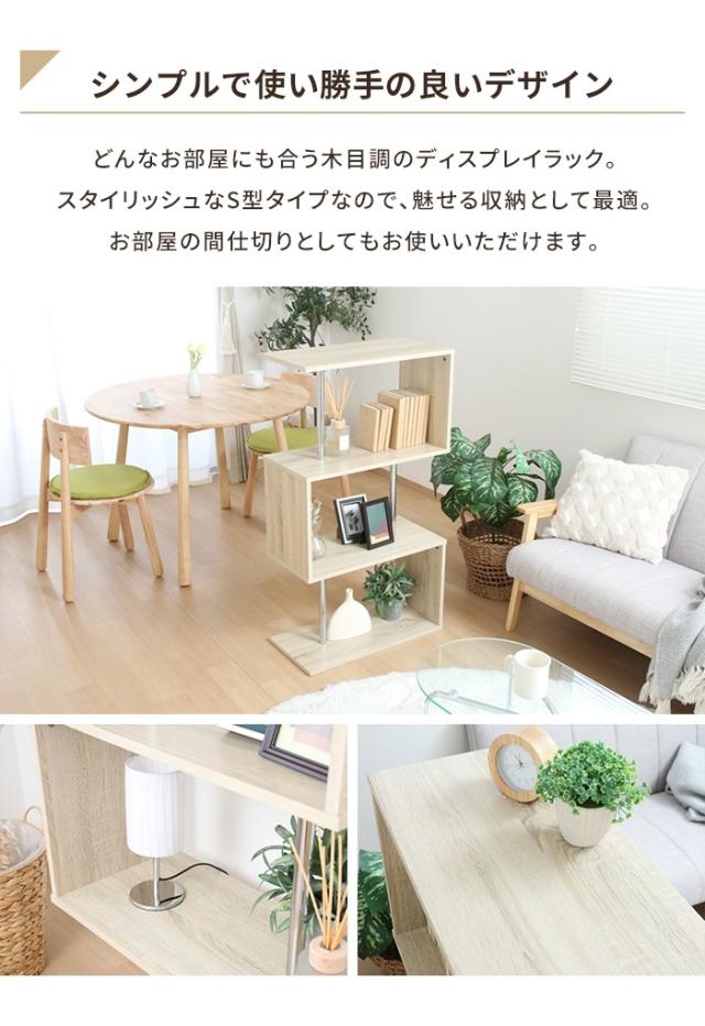 キーワード: ラック S字型 幅60 オープンラック 3段 ディスプレイラック 木製 リビング収納 インテリア 飾り棚 家具 収納 おしゃれ S字ラック シェルフ オープンシェルフ 木製シェルフ 間仕切り 60×29 スリム 収納家具 魅せる収納 ディスプレイ 小物置き 花台 リビング ダイニング 寝室 ワンルーム オークホワイト オーク