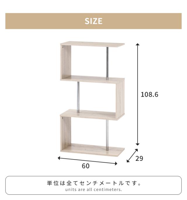 | ラック S字型 幅60 オープンラック 3段 ディスプレイラック 木製 リビング収納 インテリア 飾り棚 家具 収納 おしゃれ S字ラック シェルフ オープンシェルフ 木製シェルフ 間仕切り 60×29 スリム 収納家具 魅せる収納 ディスプレイ 小物置き 花台 リビング ダイニング 寝室 ワンルーム オークホワイト オーク |
