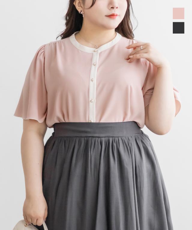 大きいサイズ/レディース/3L/4L/バイカラーフレア袖ブラウス