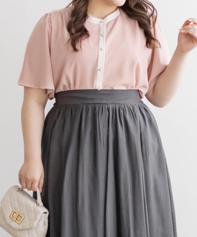 | 3Lサイズを着用してちょうどいいサイズ感でした。袖回りなどフレアなシルエットで窮屈感なく着用できました◎さらりとした肌ざわりなので着心地も良かったです。バイカラーデザインが目を惹く上品なブラウスで、フレア袖が気になる二の腕をカバーしてくれます!パンツにもスカートにも合わせやすく色々なシーンで着回しできそうです! |