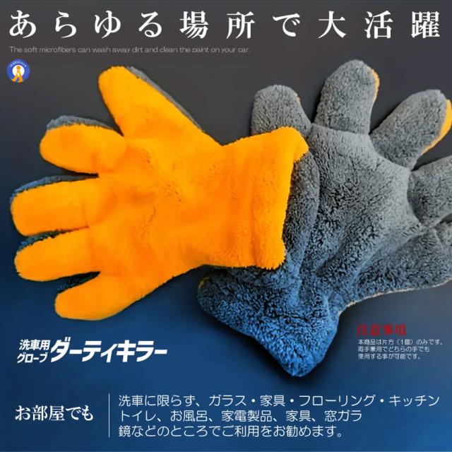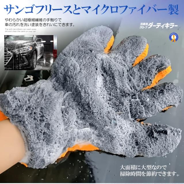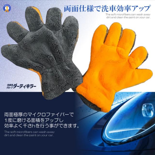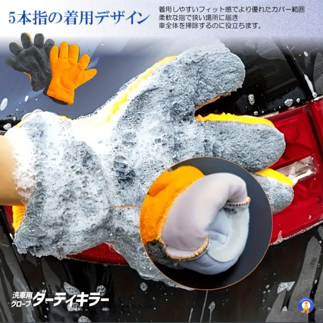 2個セット 洗車グローブ マイクロファイバー 5本指 手袋型 手袋 洗車クロス タオル カーウォッシュ RAKUSENSHA s-kk2505-52a