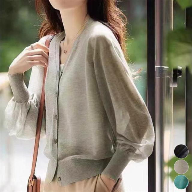 ニットカーディガン レディース 長袖 UV対策 薄手 アウター 韓国風 Vネック 軽量カーデ 冷房対策 体型カバー春秋夏