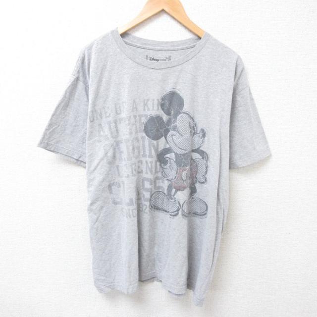 古着 半袖 Tシャツ メンズ ディズニー DISNEY ミッキー MICKEY MOUSE 大きいサイズ クルーネック グレー 霜降り XLサイズ 中古 中古 古着